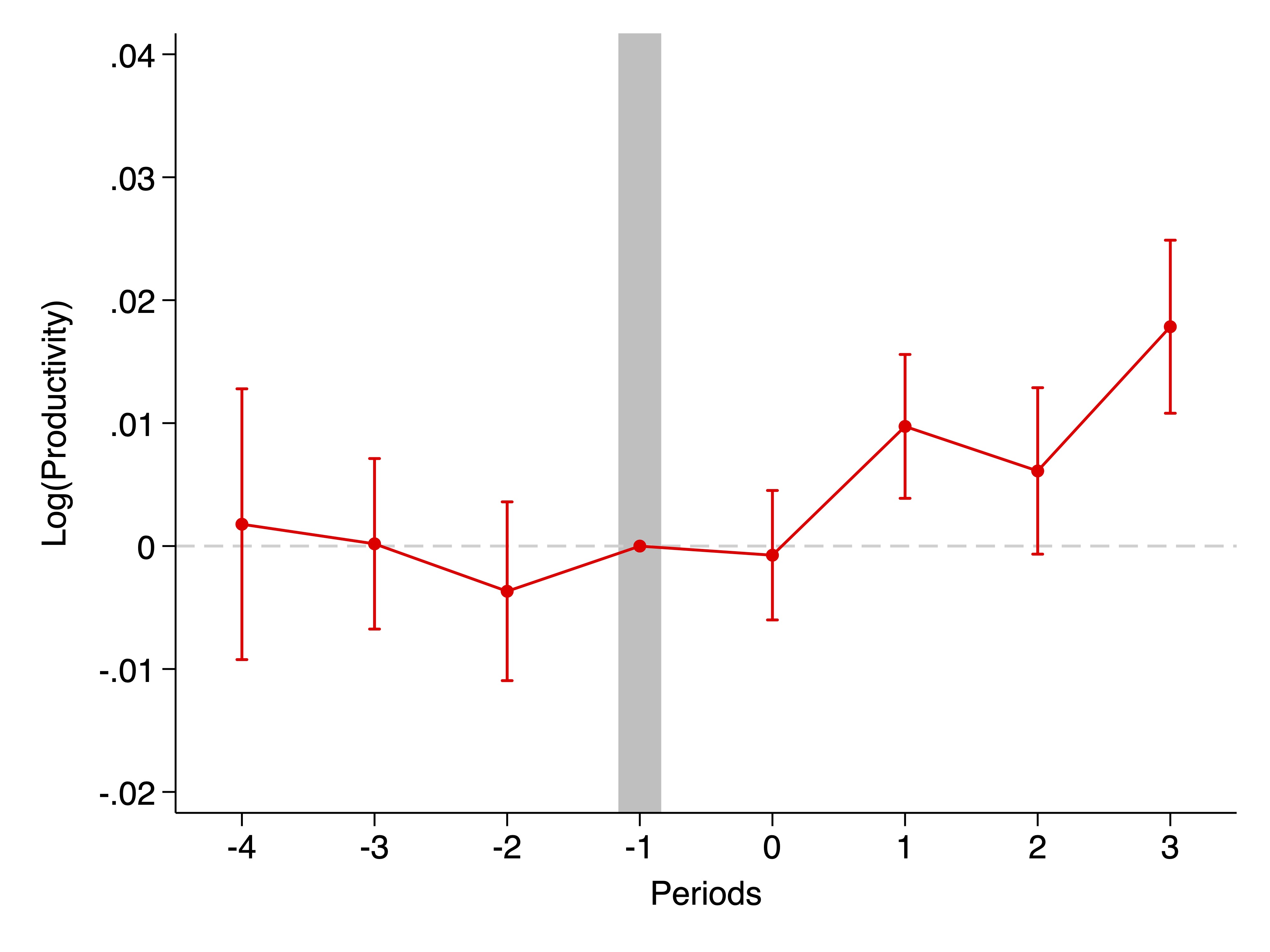 Our analysis shows that the productivity of post-reform entrants was 1.1% higher than the productivity of pre-reform entrants, as shown in Figure 4 – suggesting that intensified market competition and the shift in entrants’ composition outweighed the negative effects of more relaxed regulations.