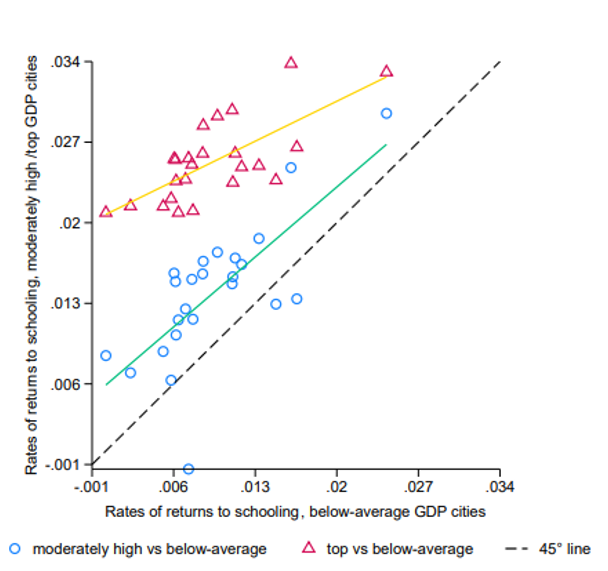 Figure 2. Rates of Returns to Schooling for Migrants Working in Cities of Different Development Levels