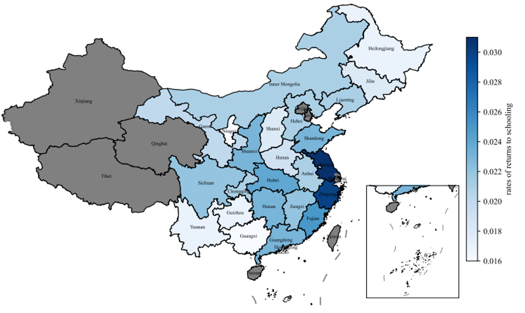 Figure 1. Rates of Returns to Schooling of 24 Major Hukou Provinces