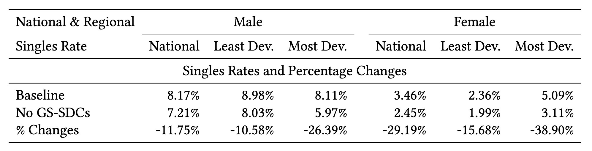 Table 1. The Effects of Gender-specific Spatial Demographic Changes on Singles Rates